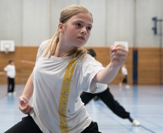 Daneben gab es zudem eine sehr kleine Gruppe von Kindern, welche noch nicht allzulange dabei sind und die täglich 1 1/2 Stunden trainierten. Sie übten vor allem die 32er-Faustform, d.h. ihre erste längere zusammenhängende Form. Sie werden ab nächster Woche mit einem schönen Vorsprung in ihre angestammte Gruppe zurückkehren.