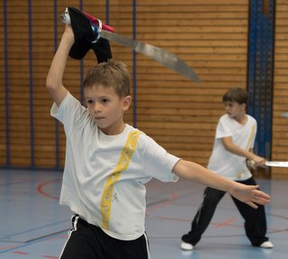 Bei den Kindern haben wir nebst der üblichen Grundschule ein zusätzliches Schwergewicht bei den Langwaffen gebildet. Hier sahen wir in den letzten Monaten, dass es ihre 2. Waffe war, die sie gelernt haben und deshalb noch nicht dieselbe Sicherheit auf den Teppich bringen, wie bei der Kurzwaffe. Die Fortschritte waren denn auch am Ende der Woche klar ersichtlich. Da alle diese Kinder früher oder später fortgeschrittenere Formen lernen, war es zudem Zeit, das Sprungtraining etwas zu intensivieren. Auch hier konnten wir schöne Fortschritte erzielen. Man übersieht gerne, wie wichtig es ist, schon bei der Einführung alles richtig zu machen und auf Exaktheit zu achten. Gerade bei den Sprüngen drängen die Kinder immer sehr rasch auf den Sprung an sich. Sie wollen sich nicht mit diesen langweiligen Vorübungen herumschlagen. Aber man kann ihnen gar nicht oft genug vor Augen führen, wie wichtig diese sind. Was einmal falsch eingeübt ist, kann nur noch mit viel Aufwand wieder heraus korrigiert werden.