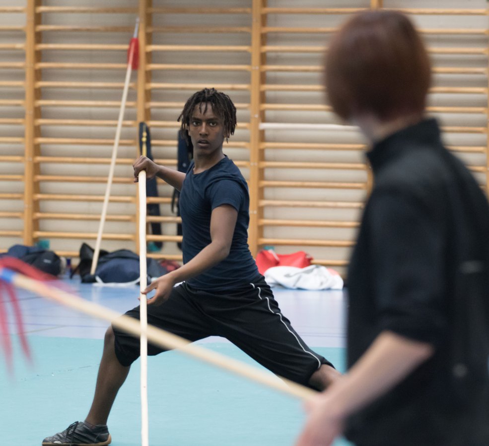 - was passt zu ihr? usw.Benjamin arbeitet hier an seiner Schwertform (Pflichtform 2012), die ihm trotz kurzer Vorbereitungszeit schon ganz ordentlich von der Hand geht.Auch Samara kriegt ihren persönlichen Anschauungsunterricht.Es hat nichts direkt mit dem Training zu tun: Aber der grimmige Blick von Adham ist mir immer wieder ein Bild wert. Wenn man bedenkt, wie liebenswert dieser junge Mann sonst ist...Hier scheint Adham zu fragen: