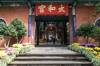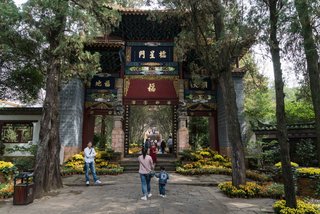 Für mich war es am 16. Oktober allerdings nur ein Kurzaufenthalt in Kunming, bevor ich am Folgetag, am Montag dann, in die Reisterrassen von Yuanyang aufgebrochen bin. Es ging darum, Chen Xuelian, welche 2015 den Yunnan-Teil unserer Reise organisiert hatte und gut Deutsch spricht, kurz zu sehen und mit ihr den weiteren Verlauf meines China-Aufenthaltes zu besprechen. Bei dieser Gelegenheit hat sie sich die Zeit genommen und mir den goldenen Tempel mit Park am Rande von Kunming gezeigt. Es handelt sich um einen daoistischen Tempel, welcher mit 250 Tonnen der grösste Bronzetempel (Kupfer) in China ist (also noch grösser, als derjenige im Wudang-Gebirge).